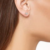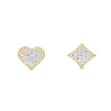 The Pure Delight Pavé earrings hold 22 brilliant diamonds totaling 0.14 carat within the finely crafted milgrain edging outlining a heart and a diamond in its pure, iconic form. They say it brings luck to wear the heart on your left side but there is no way you go wrong with either side.