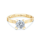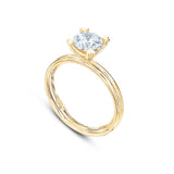 The One Delight engagement ring in yellow gold holds a pristine 1.0 carat round center diamond and features prongs that are designed in the signature heart-shape and have been carefully crafted to hold the center stone firmly in place.